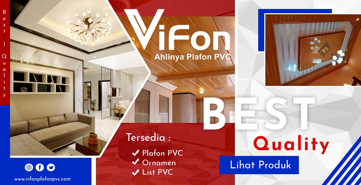 Vifon Plafon PVC adalah usaha yang melayani jual dan pasang plafon PVC Jogja. Tersedia berbagai jenis motif plafon pvc yang cocok menghiasi segala jenis konsep desain hunian.